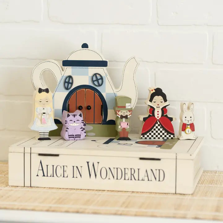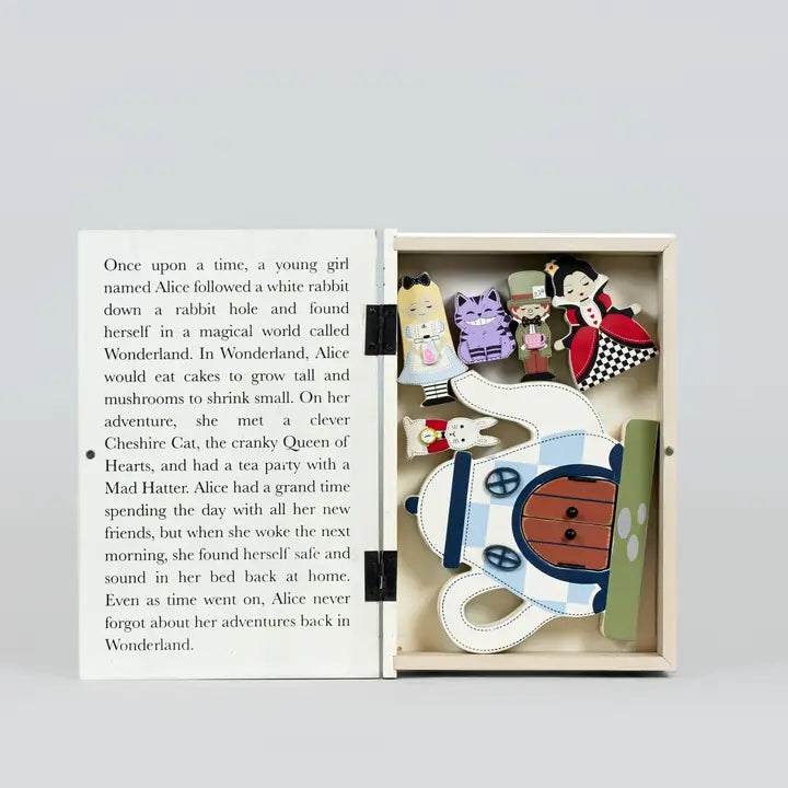 Step into a world of whimsy and wonder with our 8x12x2.5 Wood Storybook Set featuring Alice in Wonderland. This set of 7 beautifully crafted wooden storybooks brings the enchanting tales of Alice’s adventures in Wonderland to life with vivid multicolor designs. Each storybook in this set showcases a different chapter or character from Lewis Carroll's beloved classic, capturing the essence of the fantastical journey. The high-quality wood construction ensures durability, making these pieces perfect for display in a child's room, a bookshelf, or any space in need of a touch of magic. This Woodland Story Book collection is a delightful way to celebrate the timeless tale of Alice in Wonderland, whether you’re a lifelong fan or sharing the magic with a new generation. The set adds a charming and nostalgic touch to any home, making it an ideal gift for collectors and book lovers alike.