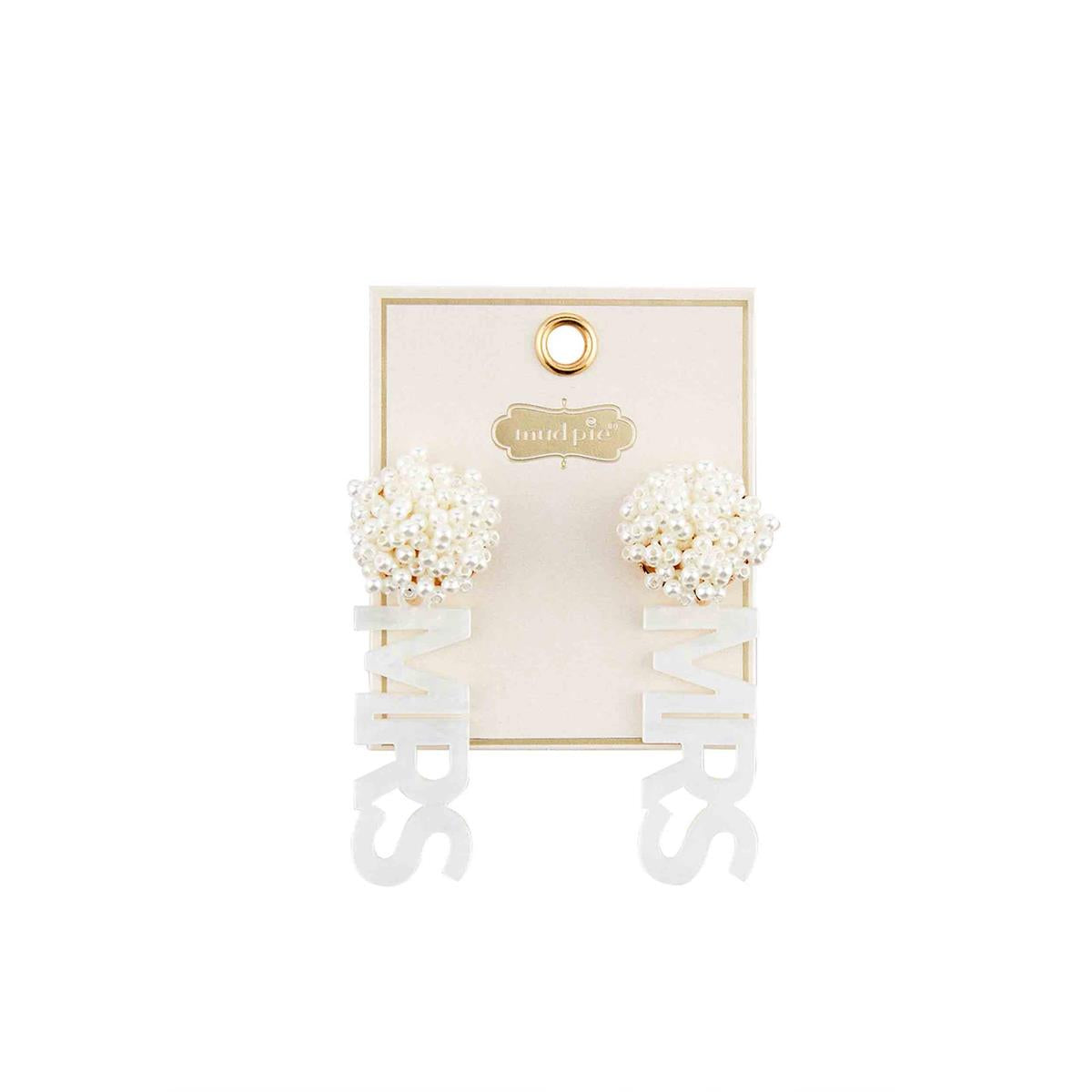 Celebrate the bride to be with our gorgeous Bride/Mrs. Beaded Earrings. The resin dye cut earrings feature pearlized cluster studs. The earrings also feature hypoallergenic posts. The resin section of the earrings feature the phrase "BRIDE" or "Mrs.". We love these for bachelorette parties, bridal showers and rehearsal dinners!