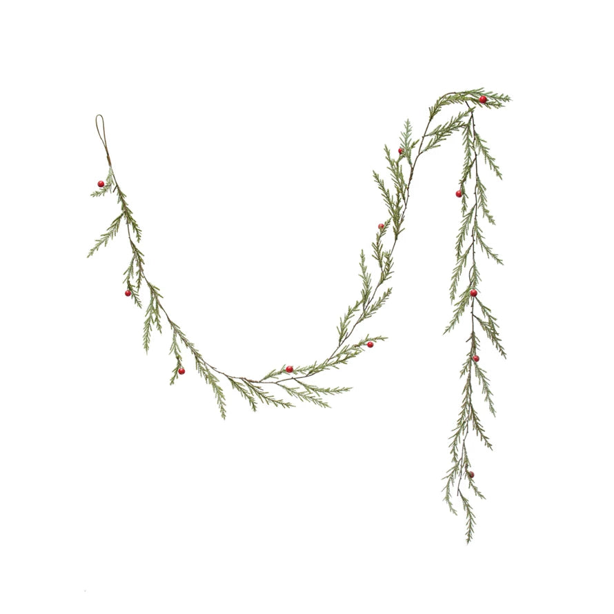 Faux Cedar Garland w/ Red Berries